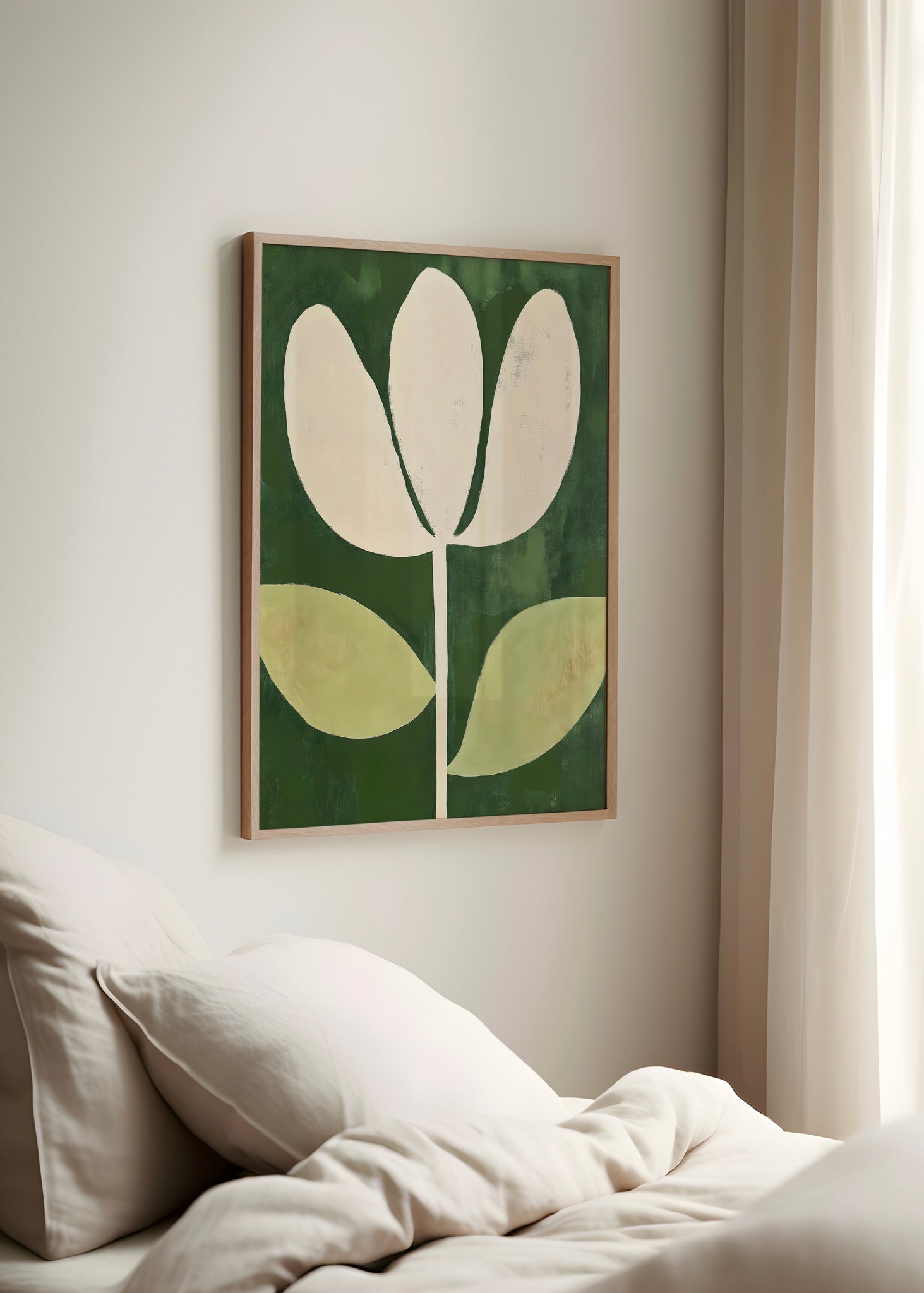 A delicate cream flower unfurls against deep green, the single bloom exuding calm and strength. Perfect in a bedroom or quiet reading corner, it adds quiet refinement.