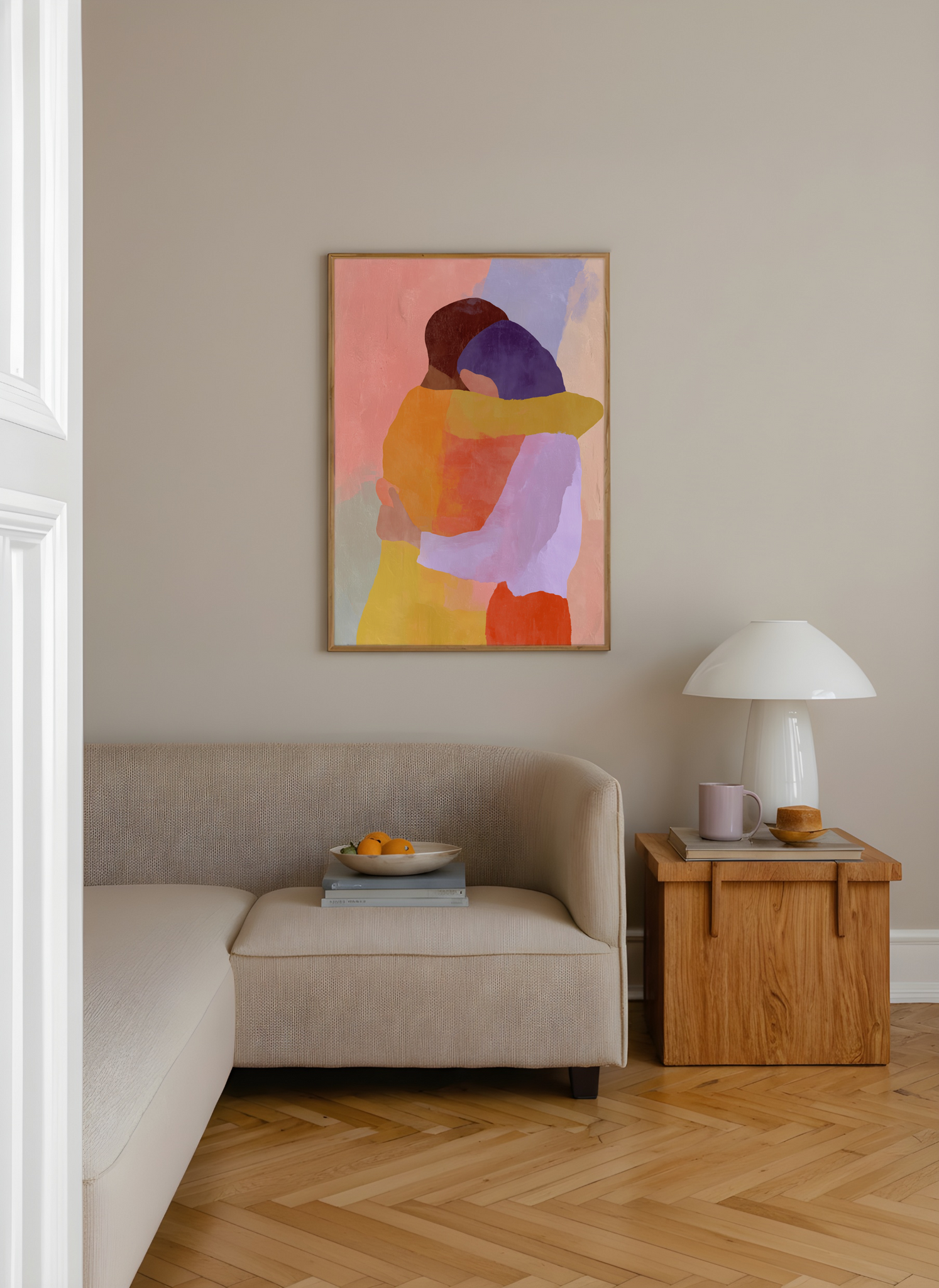 This piece captures the warmth, safety, and intimacy of a heartfelt hug. With its soft shapes and comforting palette, it brings a sense of love and connection. Ideal for a hallway, bedroom or any space that celebrates closeness.